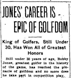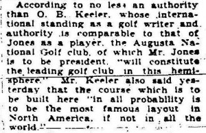 O.B. Keeler, famed golf writer and long-time chronicler of Jones’ career, made a prediction that at the time might have seemed more fantasy than fact, but now seems remarkably accurate: