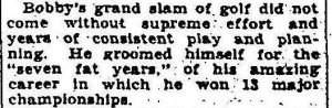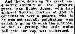Veteran Atlanta Journal reporter O.B. Keeler, who had gained fame as Jones' Boswell after years of chronicling Bobby's triumphs, gave the details: