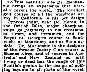 With sufficient financing, excellent topography and natural features, as well as the best design instincts of both Jones and MacKenzie, the course was ready for its debut in January 1933. The Chronicle’s coverage is replete with interesting details: