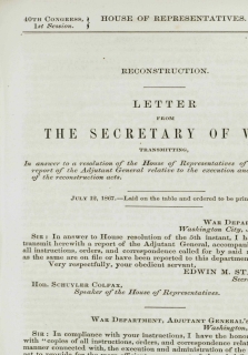 Focusing primarily on the century beginning shortly after the signing of the Emancipation Proclamation, the federal documents in Civil Rights in America: From Reconstruction to the Great Society were published by the United States Congress. They include publications and reports about civil rights from the U.S. Senate and House of Representatives, executive branch, congressional committees, special investigations and non-governmental organizations, all digitized from the originals and combined in a fully searchable database. Through both firsthand testimony and government-level analysis, this trove of largely untapped material covers the arc of American civil rights—from the myriad rights issues surrounding African Americans to the issues related to other ethnic groups, immigrants, laborers, children and undocumented workers—as seen through the eyes of those who experienced them.