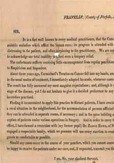 | Conway, W. T. (Wallace T.), 1773?-1822. | Certificates, of the singular efficacy of those justly esteemed and highly approved medicines, prepared and sold, wholesale by W.T. Conway, chemist--no. 1, Bumstead-Place, Common-Street--Boston. : And retailed by his appointment, by most druggists and booksellers of respectability, and also by most postmasters, throughout the U. States. : To prevent imposition the outside printed wrapper is signed by the sole proprietor, "W.T. Conway." As you value health, observe this! : Sold by special appointment, by Mr. Samuel Pilsberry [i.e., Pilsbury], successor to Cyrus Holbrook, druggist, at the Sign of St. Luke's Head, no. 56, Hanover Street. : Take care of this pamphlet--it may be of service on some future occasion. | [Boston? : s.n., 1819?] | Massachusetts | 1819 |
